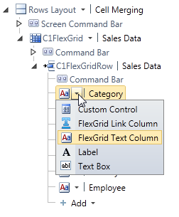 C1FlexGrid-specific column controls are always child elements of a C1FlexGridRow placeholder.