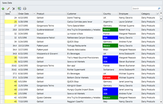 To implement the “multiple of 5” formatting for the Sales column, you will need to derive a class from C1.LightSwitch.FlexGrid.Presentation.Controls.ConditionalFormat or one of its subclasses. Since this is a numeric column, you should use NumericConditionalFormat:
