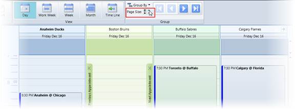You can also determine the number of schedules that appear at one time by setting the Page Size in the Group toolbar group. Use the forward and back buttons to page through the schedules.