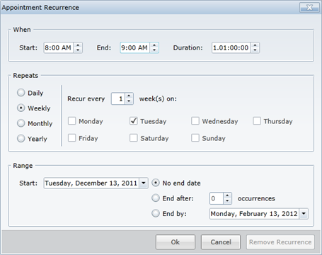 | Welcome to LightSwitch Desktop Edition > Scheduler for LightSwitch Overview > Scheduler for LightSwitch Quick Start > Working with Appointments at Run Time > Recuring Appointments |