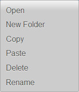 - Delete: Right click a file or folder and select Delete from the context menu. You may also use the Delete button in the toolbar to delete the selected file or folder.