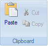 The Clipboard group resides within the Home tab (see Home Tab). The Clipboard tab appears as follows:
