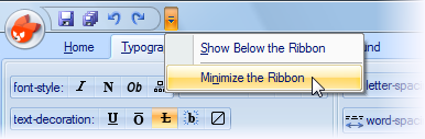 The Quick Access Toolbar, which provides easy access to commonly used functions, is next to the Foxy for ASP.NET button (see Foxy for ASP.NET Button) unless it is moved below the Ribbon using the Customize Quick Access Toolbar button.