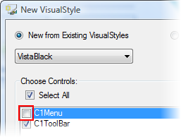 4. Clear the C1Menu check box. You’re clearing C1Menu because you’re only going to work in C1ToolBar in this tutorial.