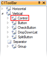 In the design pane, the vertical C1ToolBar will appear as follows:
