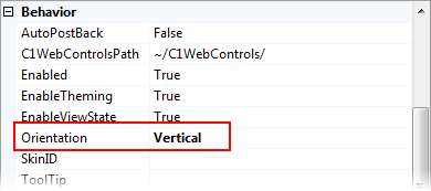 6. In the C1ToolBar Designer Form’s properties grid, set the C1ToolBar control’s Orientation property to Vertical.