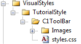 c. Add another folder under the TutorialStyle folder that you made in the last step and name it “C1ToolBar”. Your folder hierarchy will match the following image: