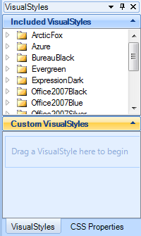 The VisualStyles pane holds two lists: Included VisualStyles and Custom VisualStyles. The VisualStyles pane appears as follows: