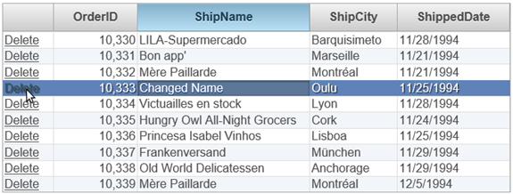 AutoGenerateDeleteButton="true" AllowClientEditing="true" DataKeyNames="OrderID" HighlightCurrentCell="true" OnRowUpdating="C1GridView1_RowUpdating" OnEndRowUpdated="C1GridView1_EndRowUpdated" OnRowDeleting="C1GridView1_RowDeleting" AllowKeyboardNavigation="true" AutogenerateColumns="false">