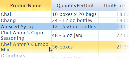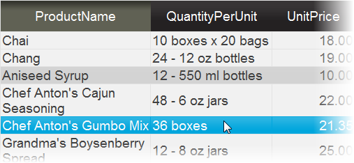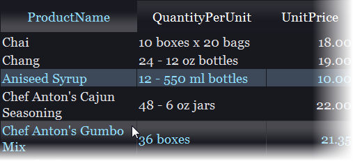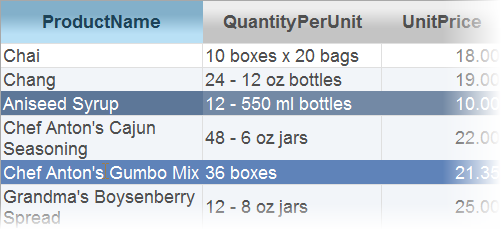 C1GridView includes themes allowing you to easily change the control's appearance. The control includes several built-in themes allowing you to customize the control's appearance to your application. You can easily change themes from the C1GridView Tasks menu, from the Properties window, and in code. For more information on changing themes see the Theming.