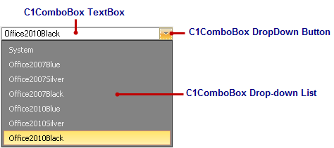 | Using the C1Input Controls > C1Input Controls > C1ComboBox Control Overview > C1ComboBox Elements |