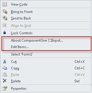 | Design-Time Support > C1SplitButton Context Menu |