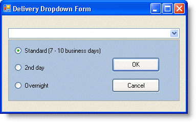 The drop-down form below includes option buttons and button controls for the user to make a selection from the C1DropDownControl.