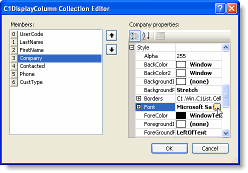 Me.C1List1.Splits(0).DisplayColumns.Item("Company").Style.Font = fntFont