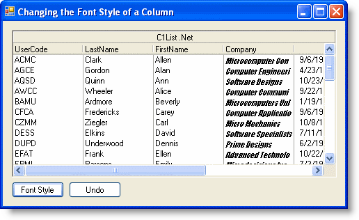 | List for WinForms Task-Based Help > Changing the Font Style of a Column |