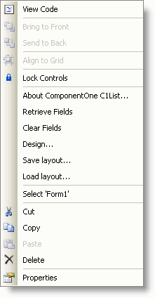 Right-click anywhere on the list to display the C1List context menu, which is a context menu that Visual Studio provides for all .NET controls, although the C1List context menu has a few extra features.