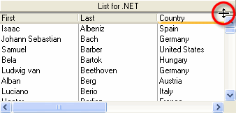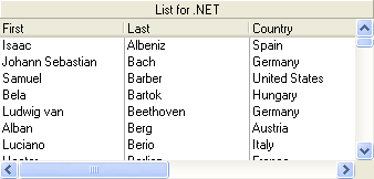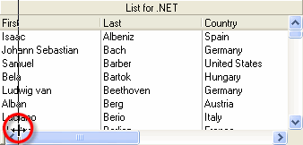 A typical list with these properties set to False is shown in the following figure. Notice that there is no split box at the left edge of the horizontal scroll bar or at the top of the vertical scroll bar.