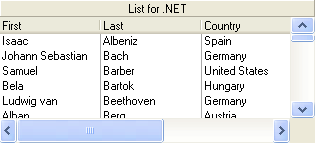 In some applications, you may want to change the thickness of the scroll bars on the list control. By setting the HScrollBar and VScrollBar properties, you can modify the thickness of each scroll bar individually in code.