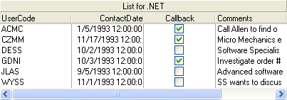 Note: If you want to use different check box bitmaps, you can still define a two-state collection of ValueItem objects through the Value property of the C1DataColumn. Set the Presentation property to Normal, and set the Translate property to True. |