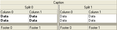 In this example, only the data cells of the first split are affected. This is because the split caption, column headers, and column footers inherit their fonts from the built-in styles Caption, Heading, and Footing, respectively.
