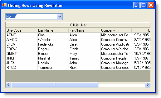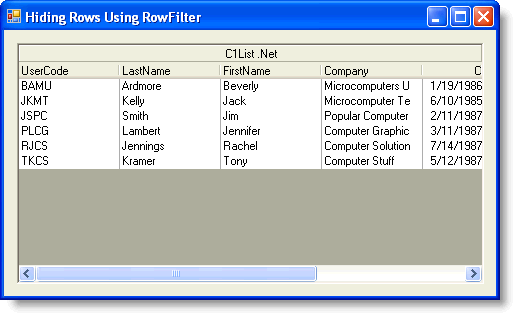 | List for WinForms Task-Based Help > Hiding Rows Using RowFilter |