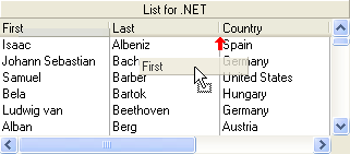 If the AllowColMove property is True, the user can move previously selected columns as a unit to a different location by pressing the mouse button within the header area of any selected column. The pointer will change to an arrow with a column header box on its tip, a small box at its lower right corner, and a position marker consisting of a red triangle will appear at the left edge of the column being pointed to and highlighted. The user specifies the desired location of the selected columns by dragging the column header, which changes positions as the mouse pointer crosses the columns.