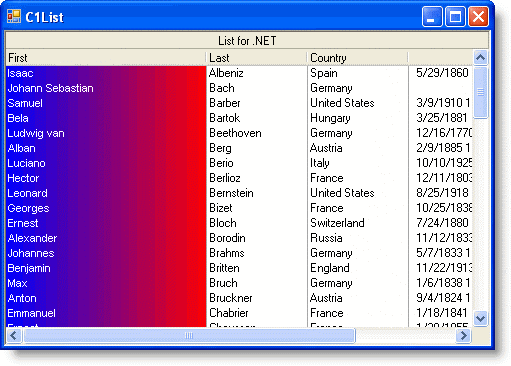 For cases where you need to perform complex per-cell customizations, you can draw directly to the list's device context by writing a handler for the OwnerDrawCell event. This event is fired as needed to display the contents of cells that have their OwnerDraw property set to True.