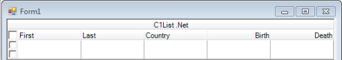 - Press the F5 key to run your application. Note that the C1List now has a checkbox appearing in the header that allows you to select the entire list.