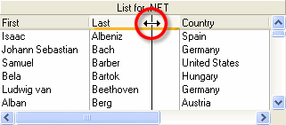 Note: Columns can only be resized using the mouse when the column headers are shown (the ColumnHeaders property is True). |
