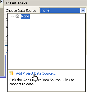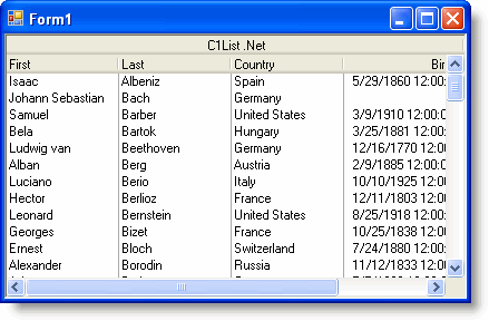 In the last step you added the C1List control to your project and created a simple list application. In this step you'll bind the C1List control to a DataSet. Complete the following steps: