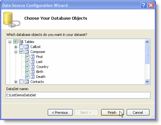 | List for WinForms Quick Start > Step 2 of 3: Binding the List for WinForms Application to a DataSet |