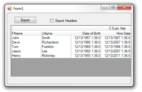 | List for WinForms Tutorials > Tutorial 22 Exporting C1List to Excel |