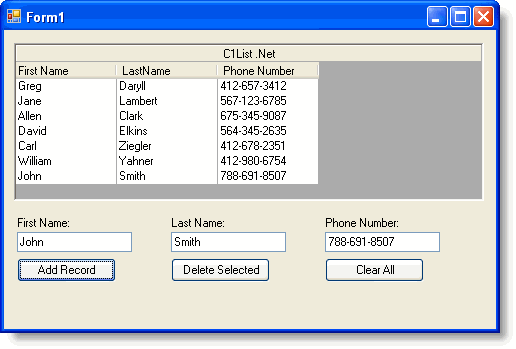 this.c1List1.AddItem("Allen;Clark;675-345-9087");
