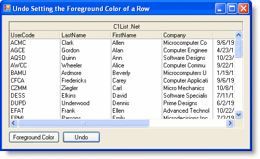 | List for WinForms Task-Based Help > Setting the Foreground Color of a Row > Undo Setting the Foreground Color of a Row |
