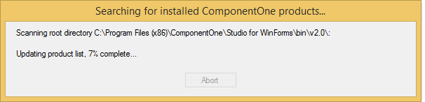 To hide particular platforms to improve load time, see the Platforms Tab topic. Once the utility has loaded it displays all supported ComponentOne products that can be installed.