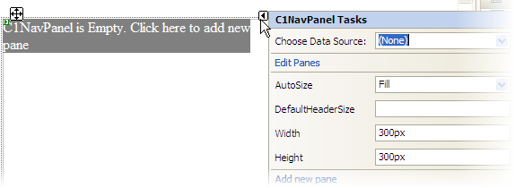 To open the Navigation Pane Designer Form, click the C1NavPanel smart tag and select the Edit Panes link from the C1NavPanel Tasks menu:
