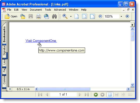 | Using ComponentOne PDF for .NET > Adding Bookmarks and Annotations > Adding Links to a PDF Document |