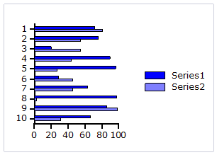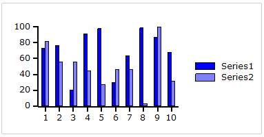 Bar and Column charts: A Bar chart or a Column chart represents each series in the form of bars of the same color and width, whose length is determined by its value. Each new series is plotted in the form of bars next to the bars of the preceding series. A Bar or Column chart draws each series as a bar in a cluster. The number of clusters is the number of points in the data. Each cluster displays the nth data point in each series. When the bars are arranged horizontally, the chart is called a bar chart and when the bars are arranged vertically, the chart is called column chart.