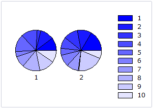 Pie chart: A Pie chart draws each series as a slice in a pie. The number of pies is the number of points in the data. Each pie displays the nth data point in each series. You can also customize Pie charts for displaying legends and labels; see Chart Properties for more information.