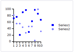 Scatter chart: A Scatter chart uses two values to represent each data point. This type of chart is often used to support statistical techniques that quantify the relationship between the variables (typically Linear Regression Analysis).