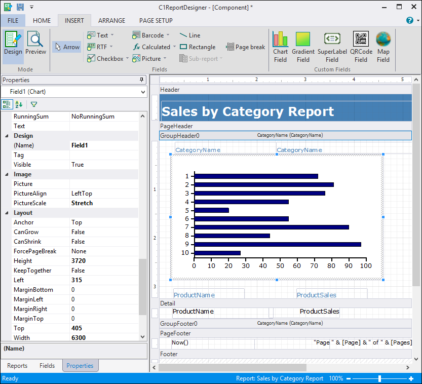 | Working with C1ReportDesigner > Enhancing the Report with Fields > Adding Chart Fields |