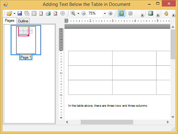 The following image shows how the document looks, when you add text below a table: