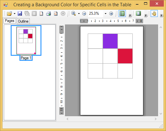 | Getting Started with Reports for WinForms > Getting Started with Printing and Previewing > Creating Tables > Creating a Table with Three Columns and Rows > Creating a Background Color for Specific Cells in the Table |