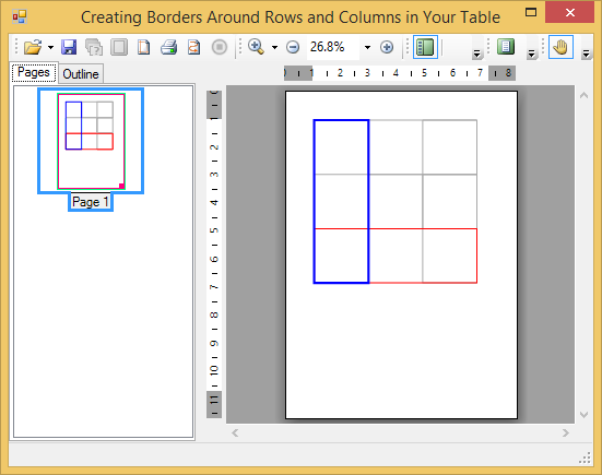 | Getting Started with Reports for WinForms > Getting Started with Printing and Previewing > Creating Tables > Creating a Table with Three Columns and Rows > Creating Borders Around Rows and Columns in Your Table |
