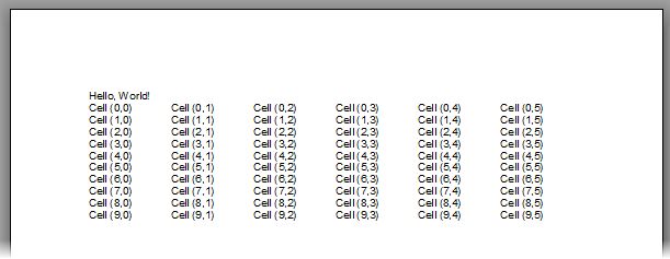Tables provide one of the most useful features in documents. They can be used for both tabular presentation of data, and for layout of other elements of a document. C1PrintDocument provides full-featured tables. In this section you will learn how to start using tables. We will use the "Hello, World!" sample application created in the C1PrintDocument Quick Start topic as our base, and add a table to it.