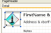 - Click on your report where you would like to place the image, and then resize the field to show the image. The following unbound image has been added to the report and is being resized: