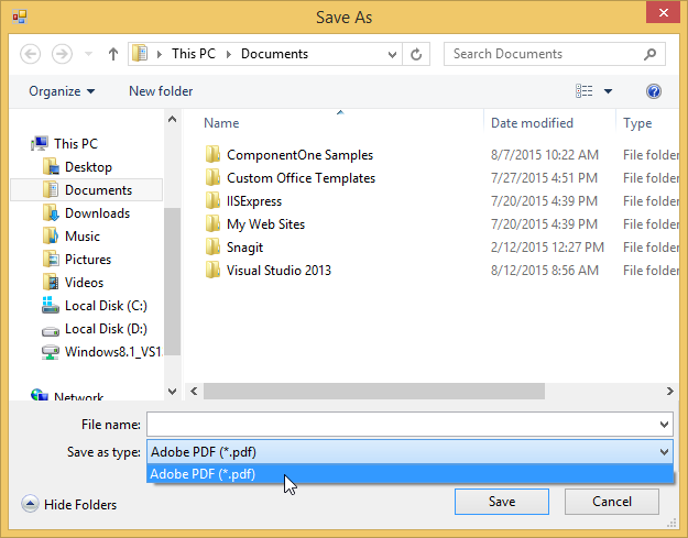 | Reports for WinForms Task-Based Help > Printing and Previewing Task-Based Help > Customizing the File Formats in the Save As Dialog Box |