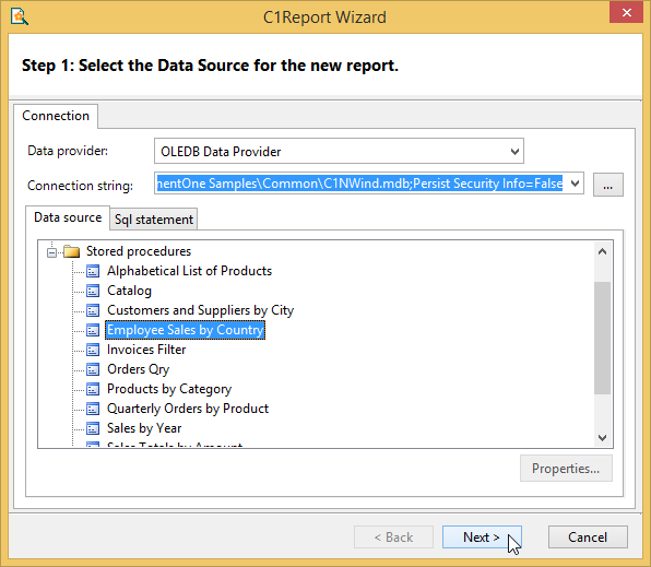 | Working with C1Report > Loading, and Rendering the Report > Loading Report Data > Loading Data from a Stored Procedure |