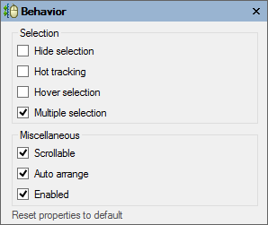 Clicking the Behavior button opens the Behavior dialog box where where you can edit the behavior settings of the Thumbnail view.
