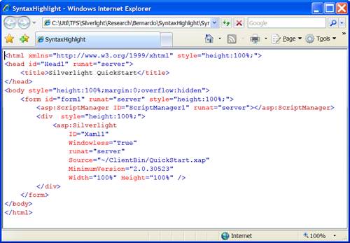 Test the application by typing or pasting some HTML text into the control. Notice that shortly after you stop typing, the new text is colored automatically.